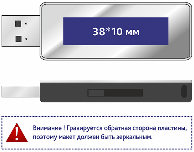 Внимание! При подготовке макета учтите, что гравируется обратная сторона пластины, потому макет должен быть зеркальным;